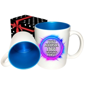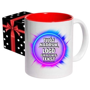 Foto kubek CZERWONE wnętrze UCHO SERCE ze zdjęciem personalizowany Napis Logo Grafika
